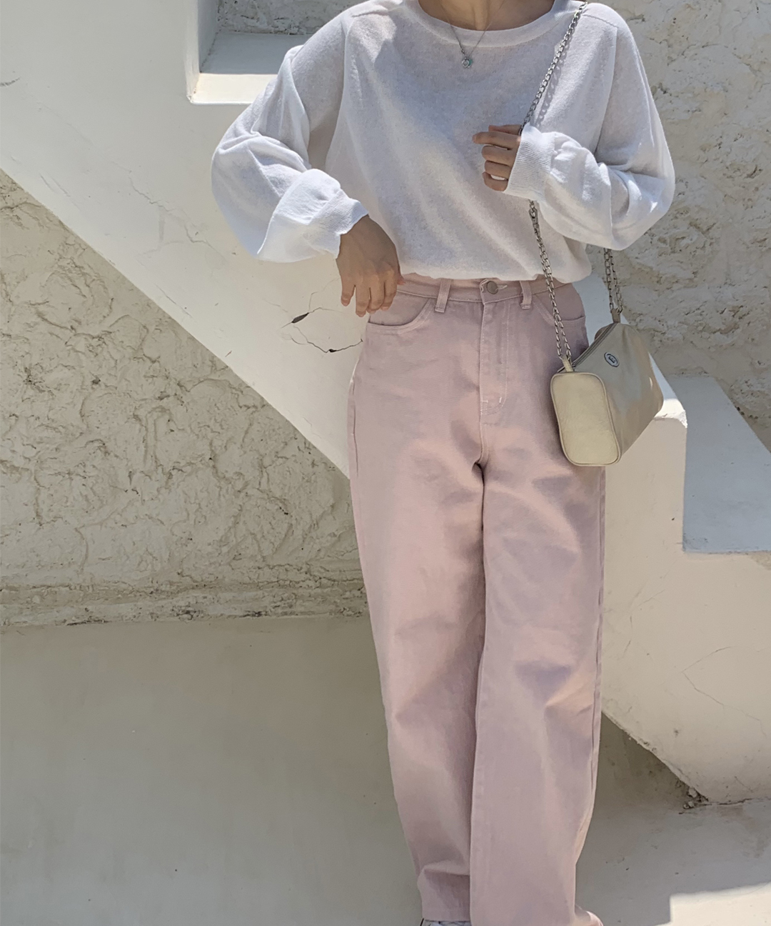 ((재고 정리 30% 할인)) 핑크 코튼 슬림 일자팬츠