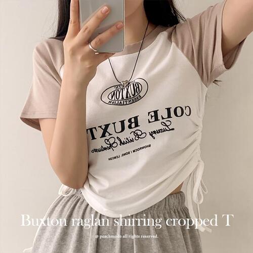 벅스 레터링 배색 나그랑 옆셔링 크롭 반팔 티셔츠 (2color)