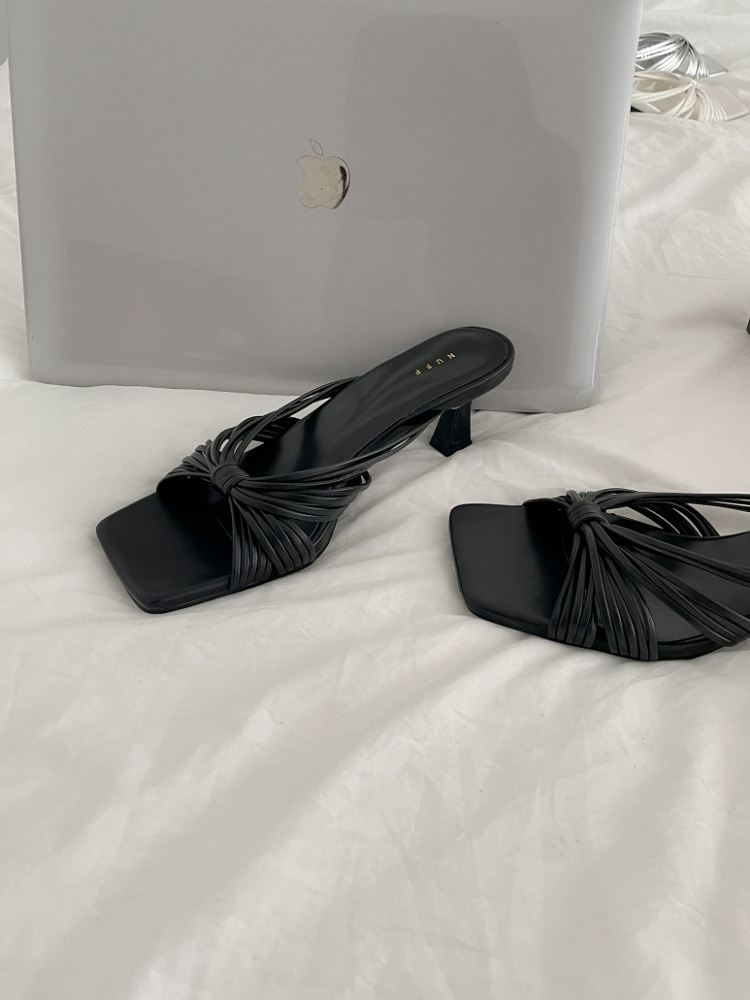 셀러 스퀘어 스트랩 매듭 미들힐 뮬 슬리퍼 5cm
