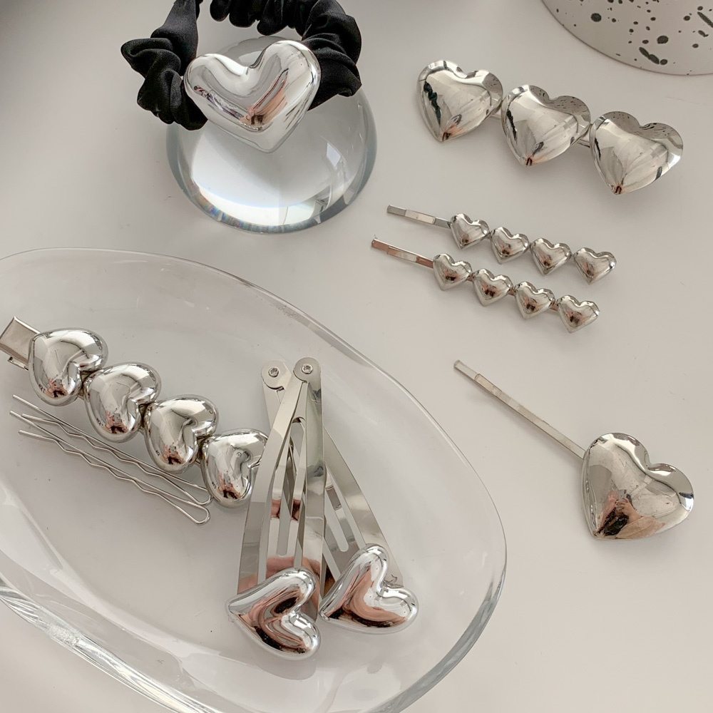 [인기폭주!/아이돌템] 실버 하트 메탈 헤어 유니크 포인트 실핀 머리끈 집게핀 세트 6type