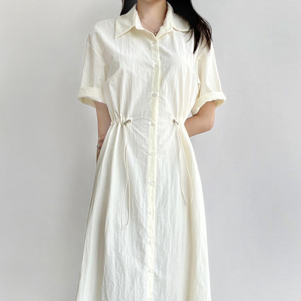 [3color/데일리룩] 닐리 여성 여름 연노랑 카라 롱 스트링 휴양지 바스락 아노락 반팔 셔츠 원피스 바캉스룩