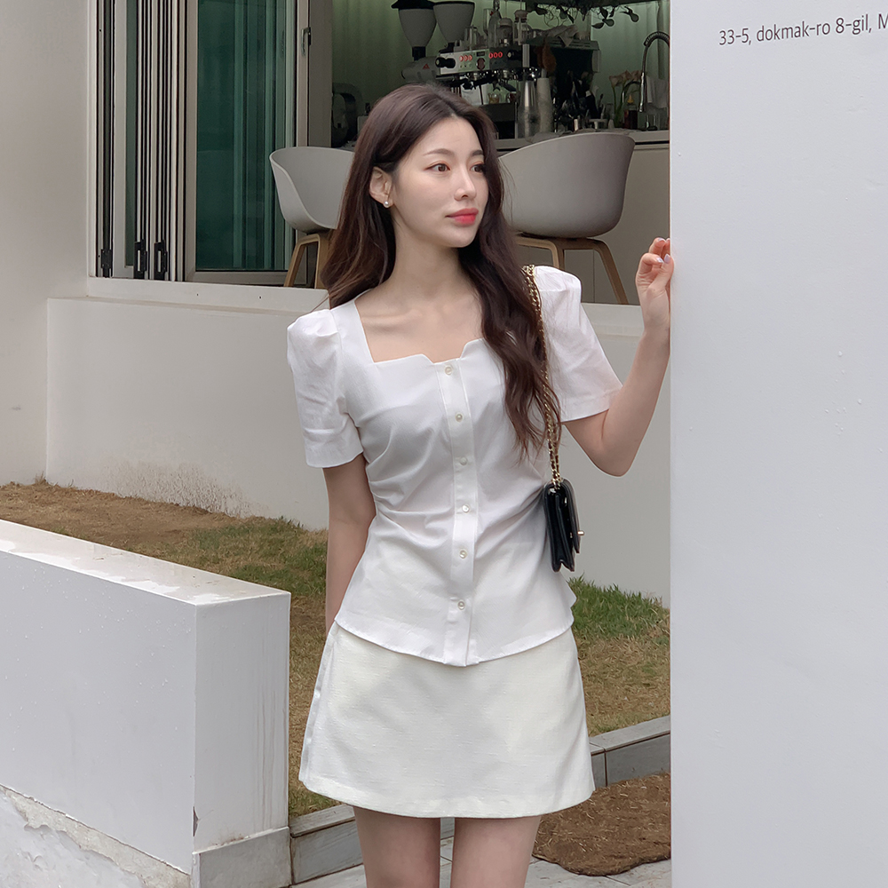 [Dali made/컬러추가❤/S,M] 라체드 스퀘어넥 퍼프 셔링 리본 블라우스(출근룩/여름블라우스)