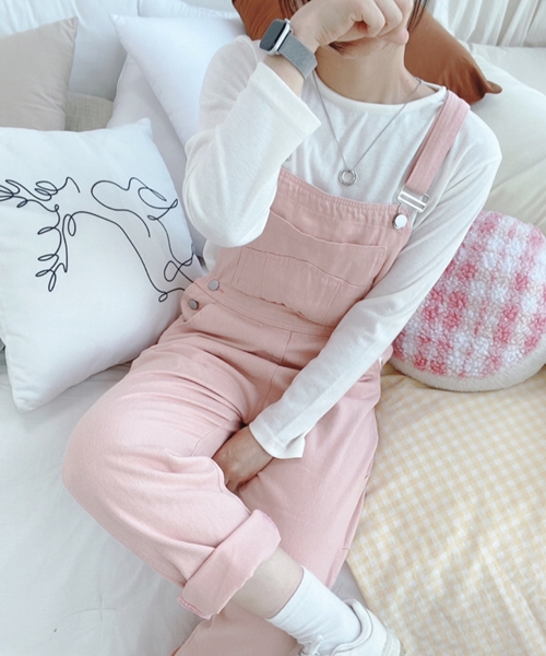[당일출고] 키작녀 귀여운 베이비핑크 멜빵바지 코디