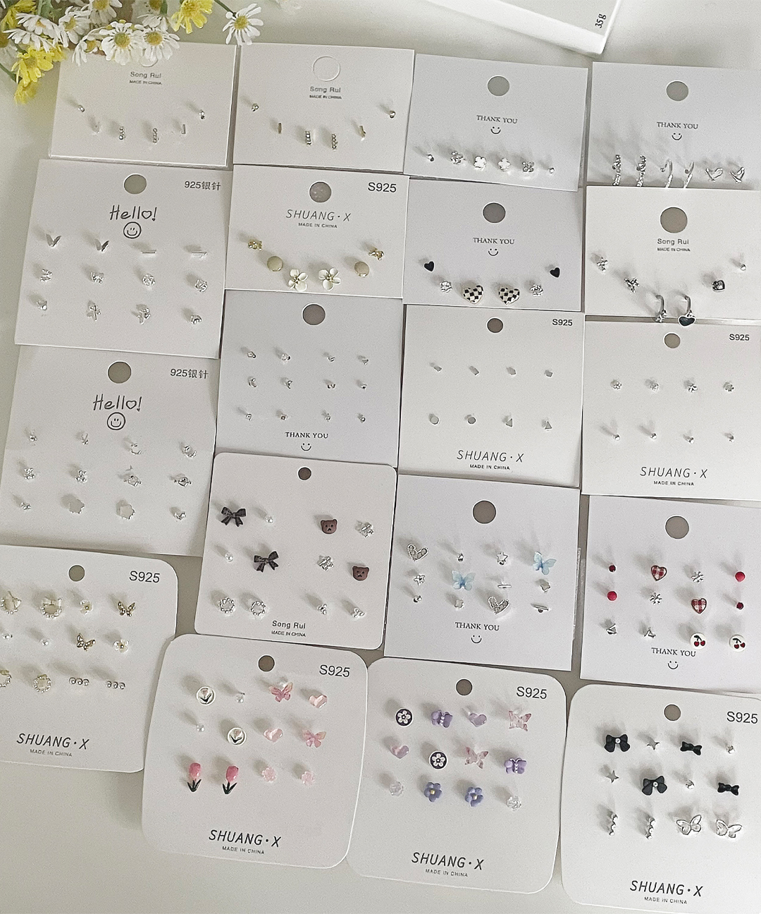유기견후원 실버925 하트 진주 스터드 은침 데일리 귀걸이 19종 세트 no.38