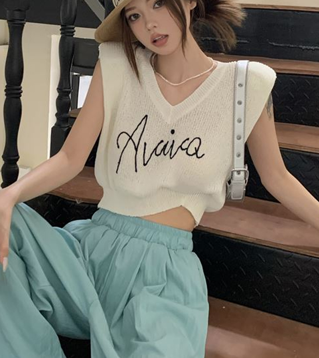 20대 30대 여성의류 쇼핑몰 여름패션 레터링 크롭 니트