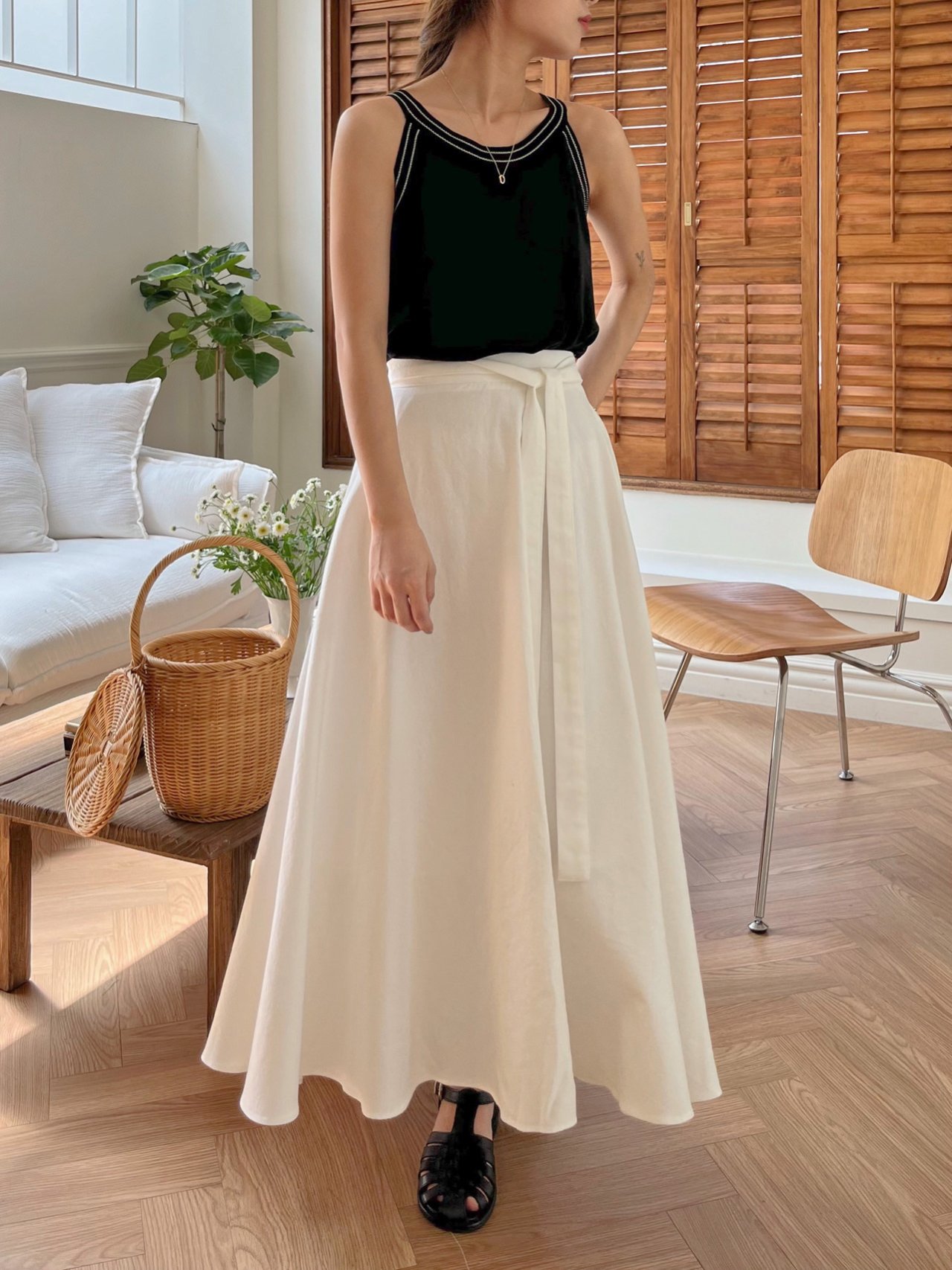 맥시부 소라색롱스커트 흰색 화이트 롱치마 맥시