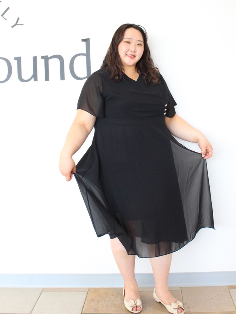 [~8XL] 플러스 사이즈 쉬폰 랩 롱 원피스 4XL 6XL 8XL 블랙 셔링 빅사이즈 하객룩 A라인 드레스