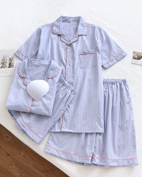 ♥당일발송♥( 노브라OK ) 블루밍 커플 잠옷 아사면 여름 파자마 브라캡 내장