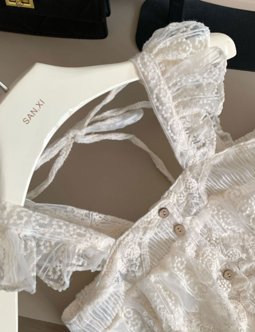 무드 레이스 나시 블라우스 핀턱 뷔스티에 프릴 민소매