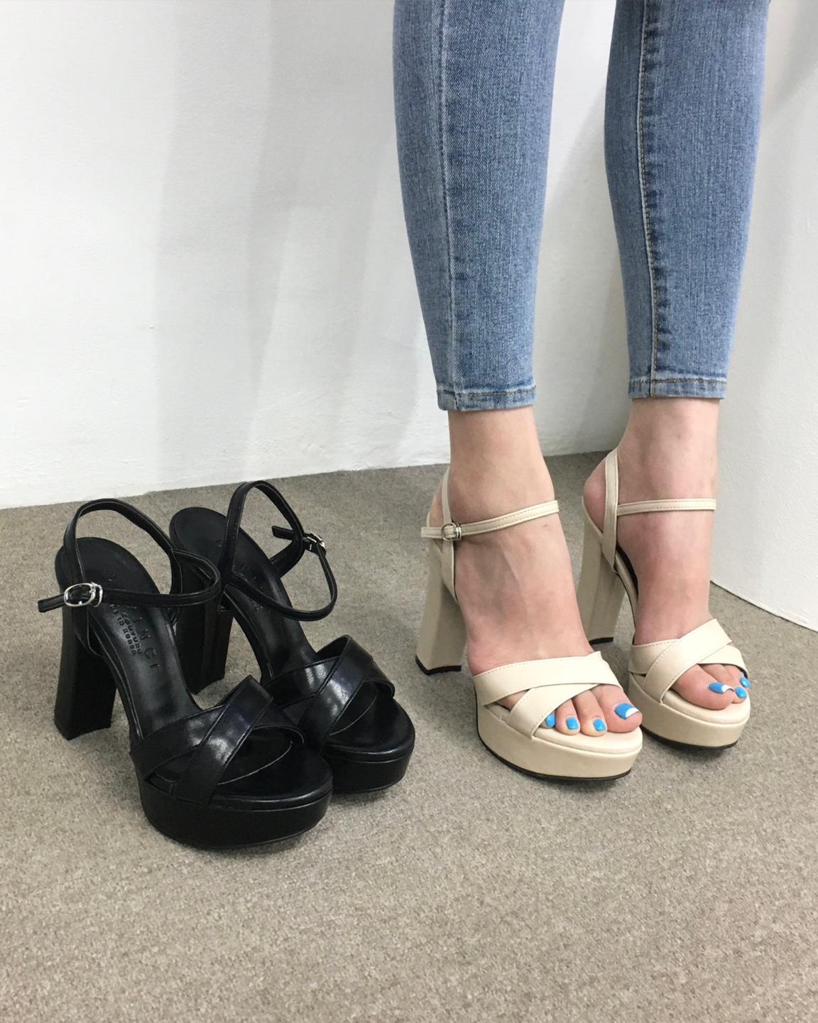 [당일배송/국산수제화] 가보시 엑스 스트랩 통굽 샌들힐 11cm