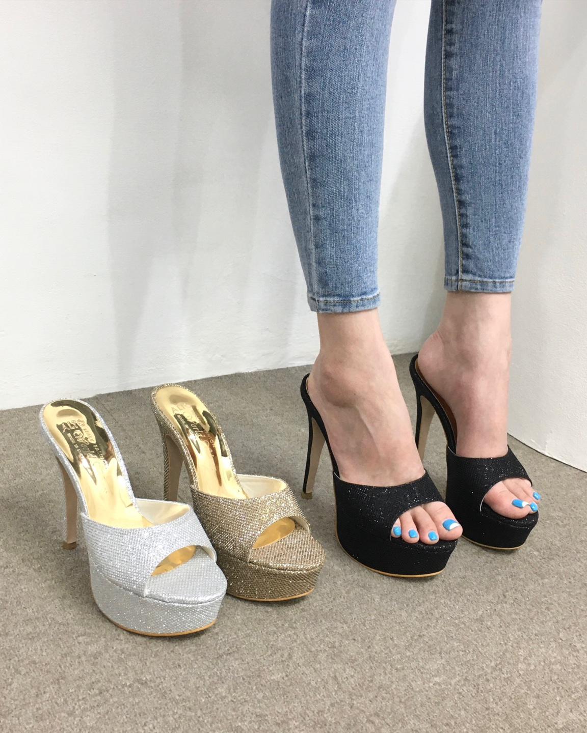 [당일배송/국산수제화] 샤이니 토오픈 가보시 뮬 슬리퍼 샌들힐 13cm