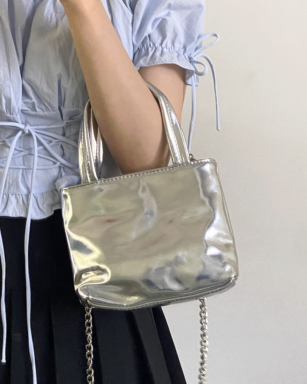 히치 스퀘어 미니 실버 토트 체인 크로스백