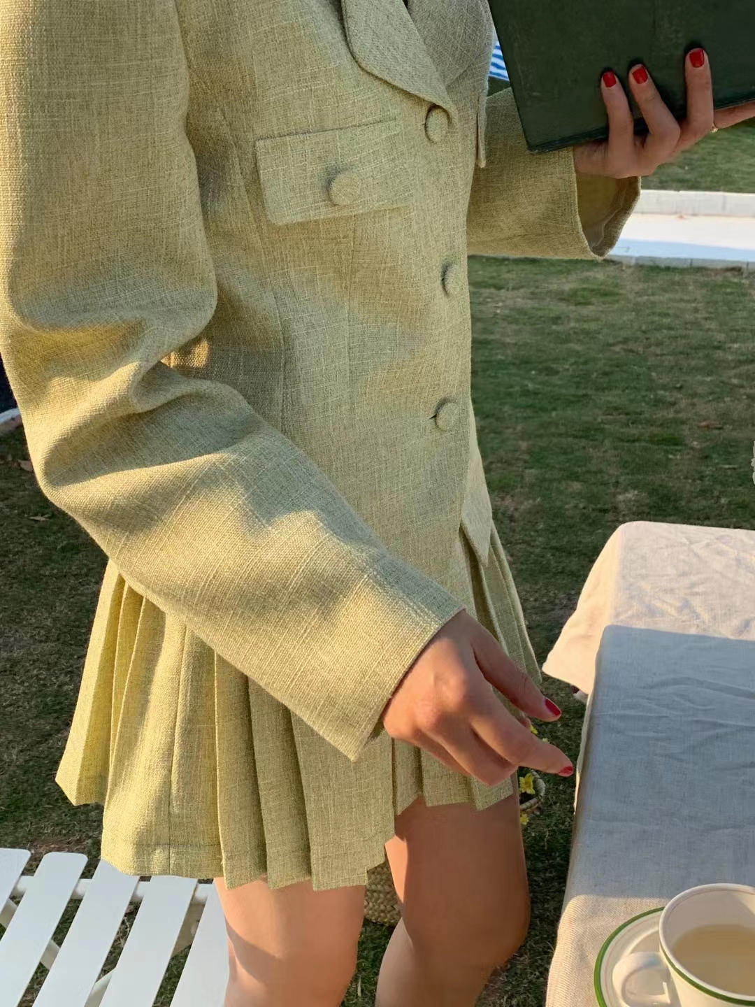 쁘띠 테일러카라 트위드 플리츠 스커트 정장 셋업