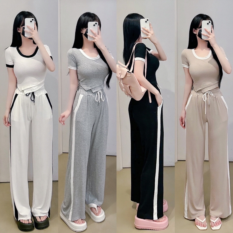 [키작녀] 배색 라운드 사선 트레이닝 세트 ( 4 COLOR )