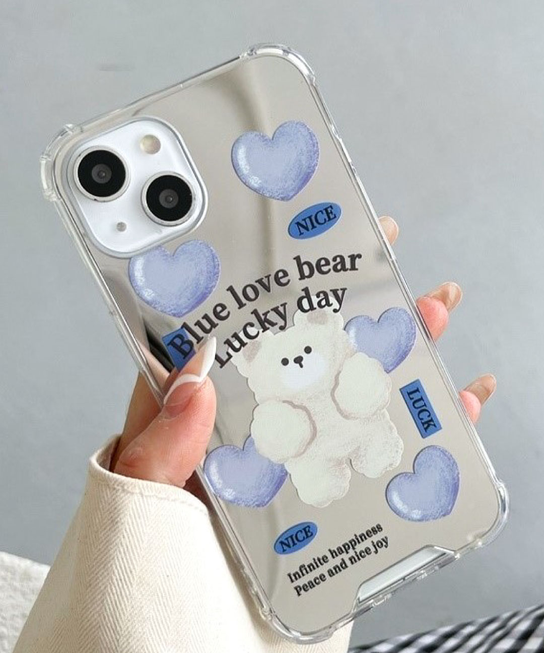 +15입고 [미러] Blue love bear mirror 아이폰케이스 거울 블루 하트 곰돌이 귀여운폰케이스 데일리 하늘색폰케이스
