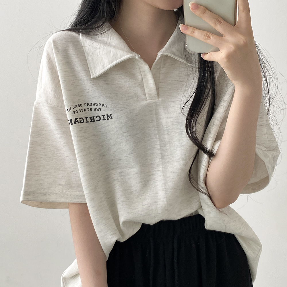[카라넥!] 오버핏 반오픈 카라넥 미시간 반팔 티셔츠 3color