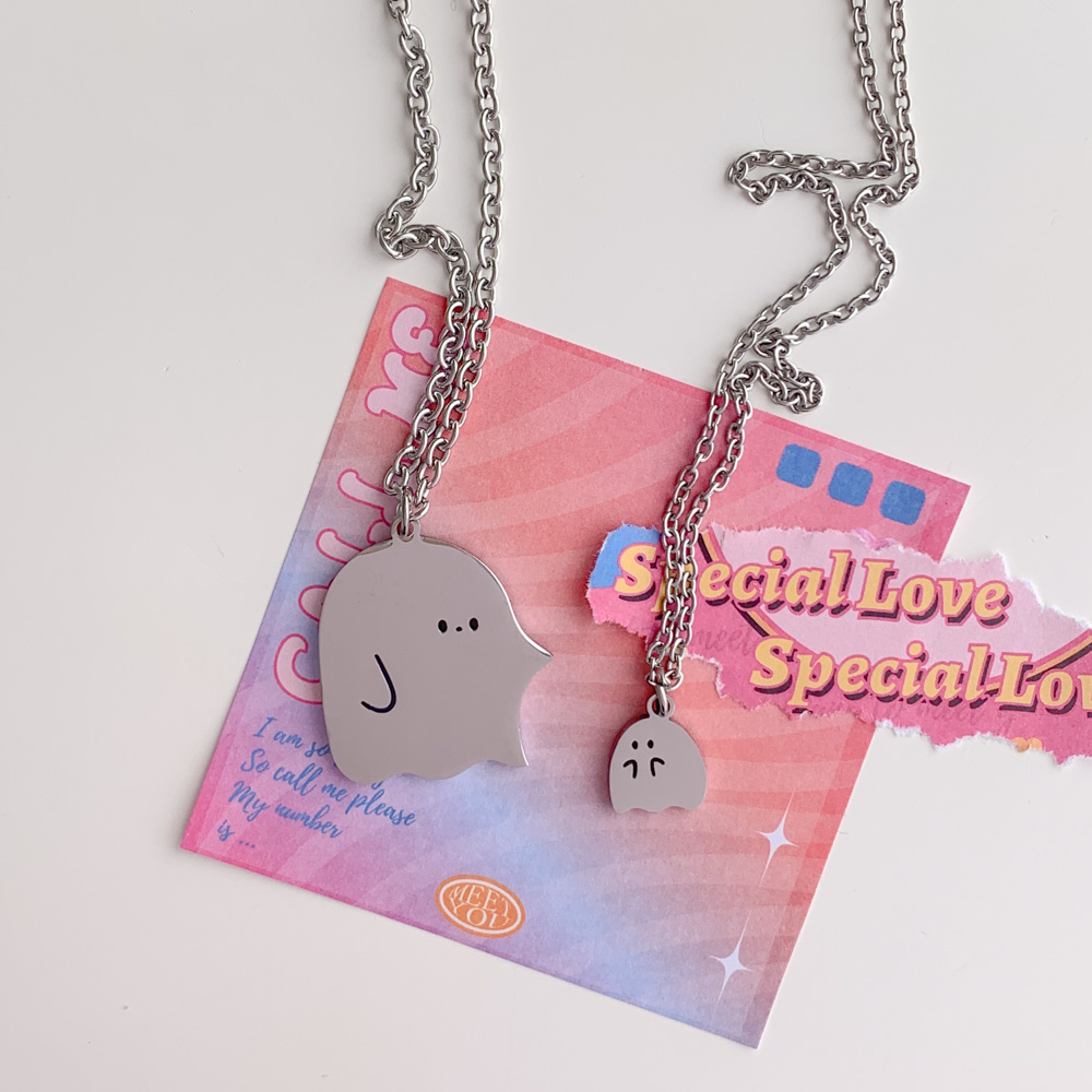 [1+1=2개세트] 커플템 쓰담쓰담 유령 써지컬스틸 우정 커플 목걸이