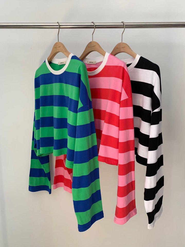amiment 아미먼트 챔프 단가라티 스트라이프 럭비 크롭 티 3color