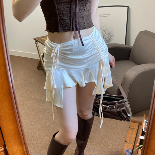 *당일출고[여리요정룩/유니크존예💕]y2k 여름 찰떡 로우 언발 셔링 스트링 리본 미니스커트 치마 로우 밴딩 프릴 러플 발레코어룩