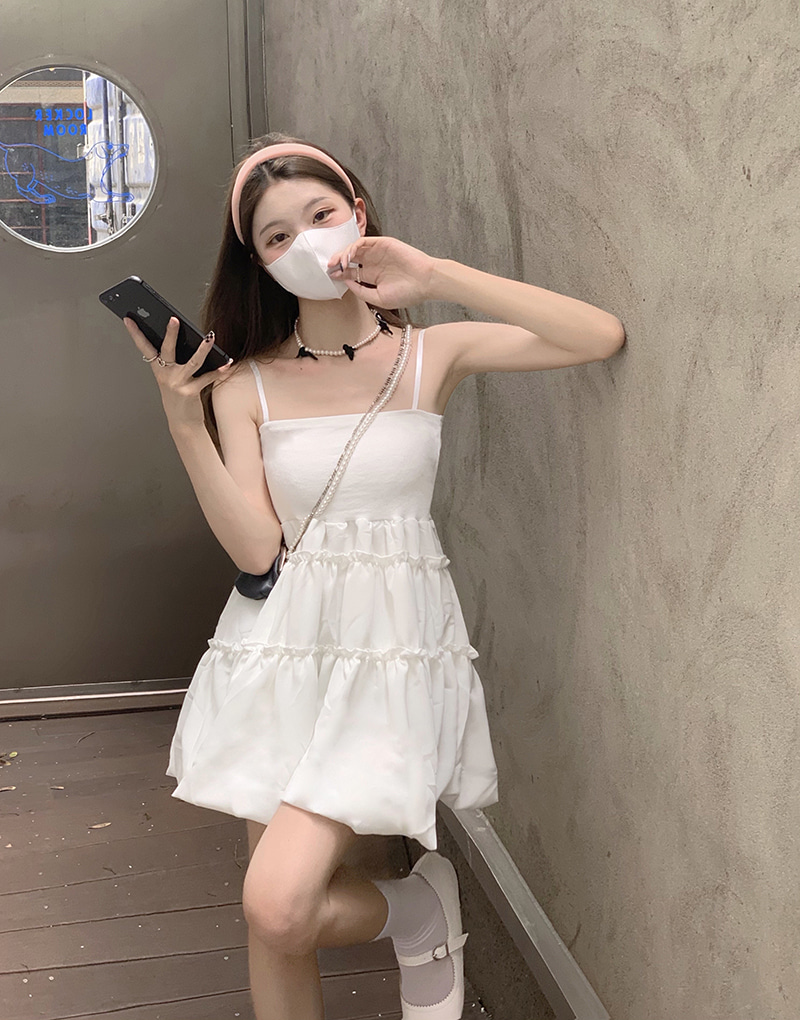 공항패션 공항룩 [블랙&화이트] 오프숄더 슬링 A라인 미니원피스