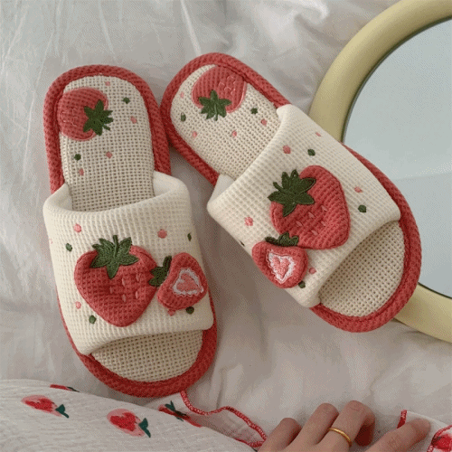 [층간소음 방지 실내화] 라탄 스트로베리 딸기 홈 슬리퍼 (1color)