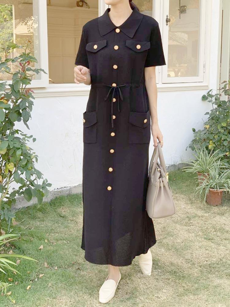 여름 원피스 외출룩 미시룩 여성 카라넥 버튼 포켓 롱 니트 원피스(2컬러)