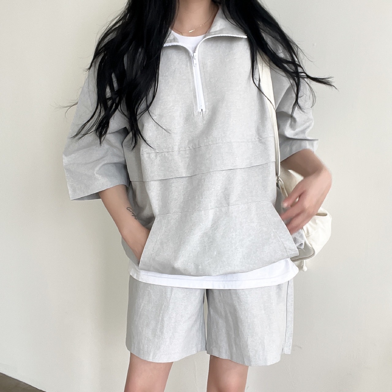 [고퀄리티/남녀공용/커플룩강추/퀄리티대박] 피그먼트 반팔 카라 아노락, 반바지 세트 4color