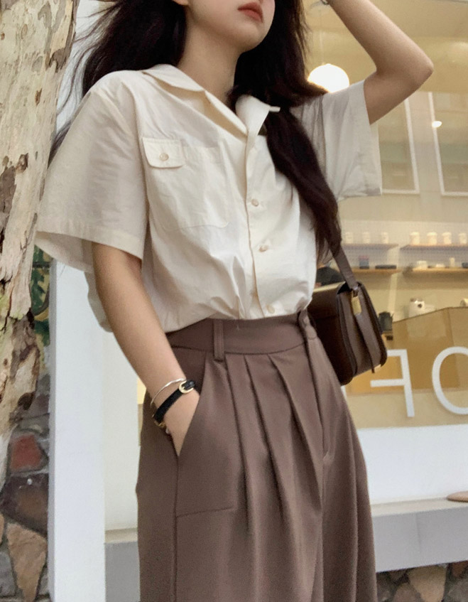 공항패션 공항룩 루즈핏 포켓 여름셔츠 / 하이웨스트 투핀턱 와이드 여자 슬랙스