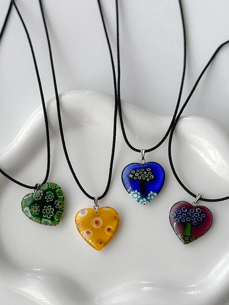 [무배] 글라스 하트 이태리 블랙 끈 조절 목걸이 무알러지
