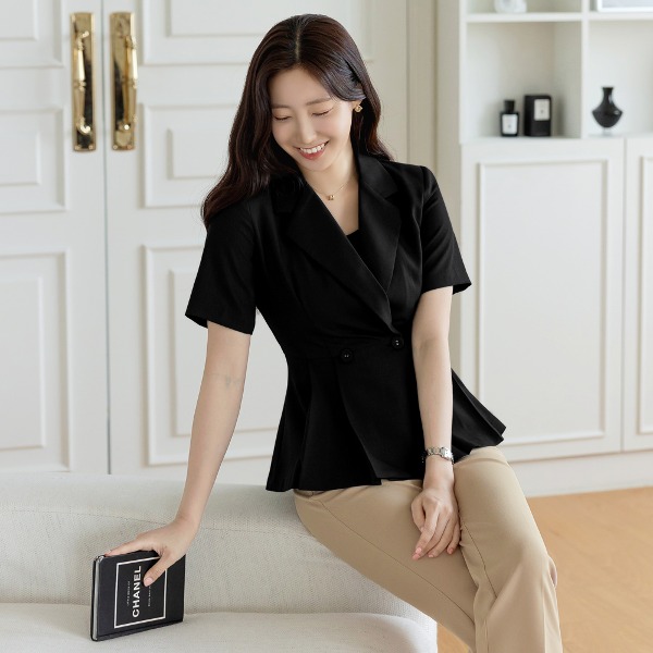 [여름출근룩/완벽핏]베르세르크 플리츠 페플럼 자켓