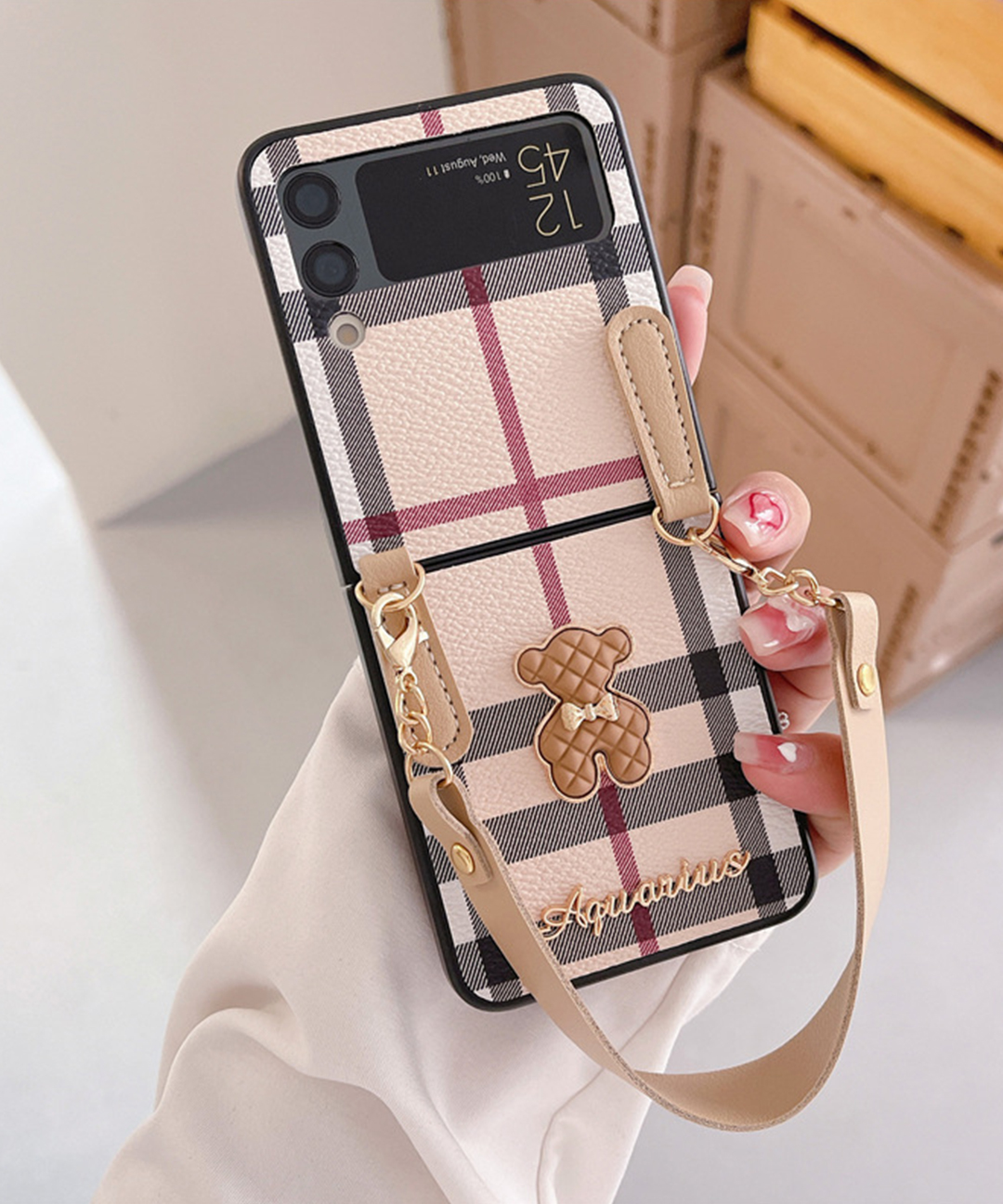갤럭시 Z플립 지플립 3 4 5 6 브라운 곰돌이 체크 스트랩 손잡이 지플립5 Z플립6 삼성 선물 귀여운 유니크 키치 특이한 심플 핸드폰 휴대폰 폰 케이스 지플립케이스