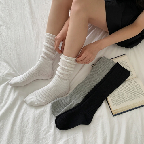 [무배/봄여름용] 브리즈 니트 골지 시스루 주름 롱 삭스