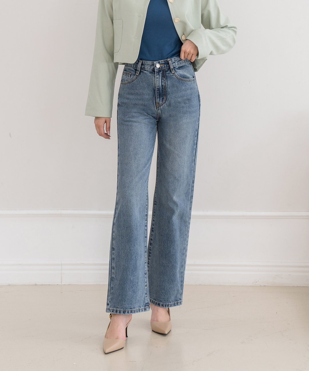 포코 블루 난스판 와이드 데님 팬츠 RM3W27