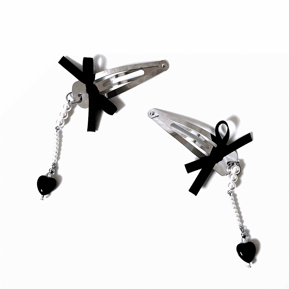 Ribbon drop hairpin 리본 드롭 비즈 헤어핀 머리핀 똑딱핀 하트 y2k 키치 유니크 하이틴 러블리
