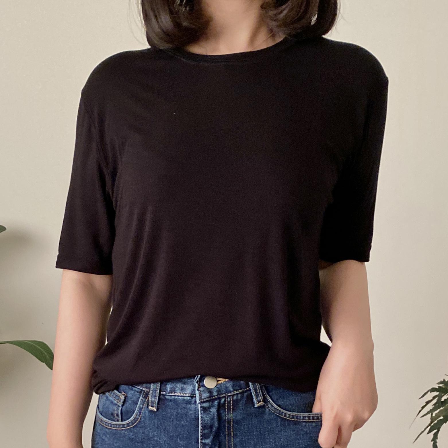 [1+1 기획] 7color 찰랑이 차르르 무지 라운드 반팔 기본템