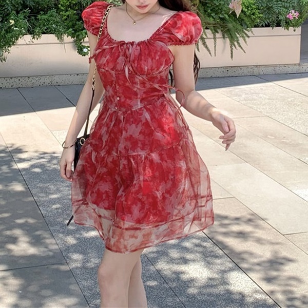 플라워 패턴 퍼프 메쉬 페어리 미니원피스 2C28284