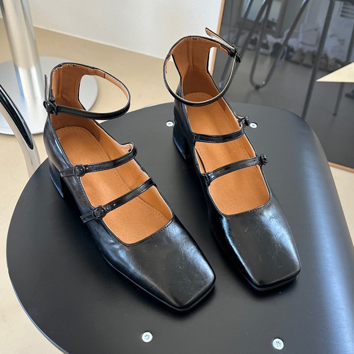 HS2139 각코 큐티 트리플 슬림 스트랩 미들굽 펌프스 힐 5cm