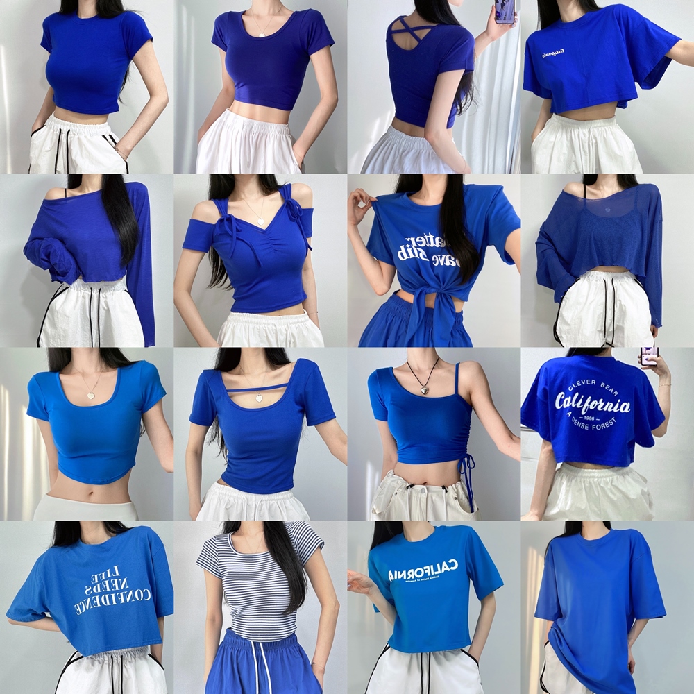 [당일💙/흠뻑쇼/페스티벌룩] 드미엘 블루 티셔츠 나시 모음 반팔 긴팔 크롭 워터밤 싸이 흠뻑쇼룩 워터밤룩
