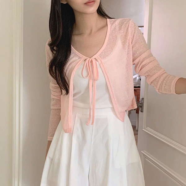 [썸머골지/살안타템][made] 에브리데이 쿨 골지 여리 리본 가디건 (여름/데일리/레이어드/니트/가디건/시스루/크롭/쿨링/쿨골지/장마템)