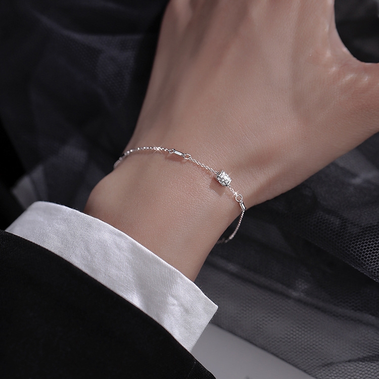 [당일출고] 라운드 볼 큐빅 스틱 체인 팔찌 [실버] N434