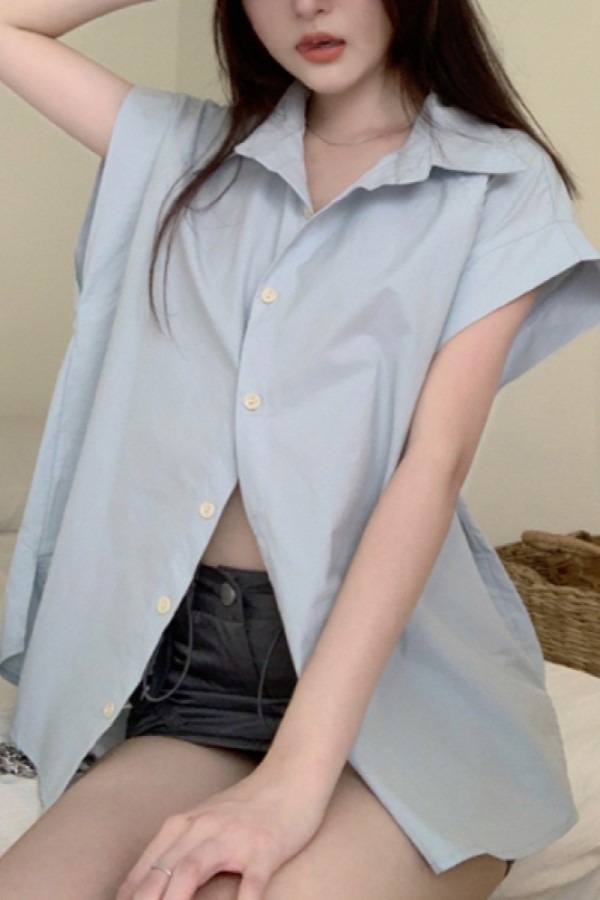 로티 폴로 카라 브이넥 반팔 루즈핏 셔츠