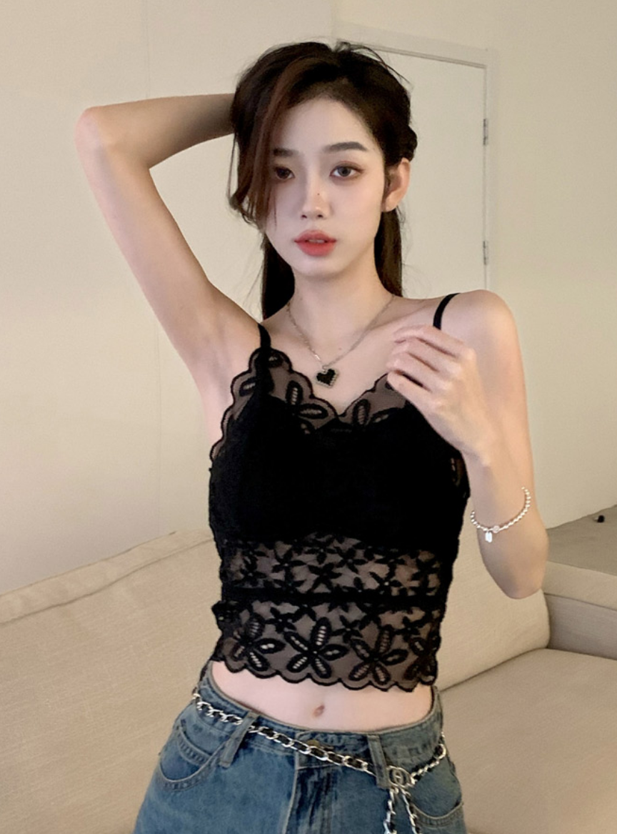 여성스러운 시스루 캡내장 여름 끈나시