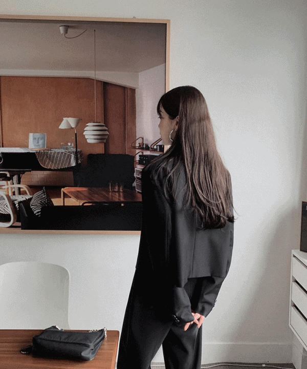 [SET][~XL] 하객룩 크롭자켓 블레이저 + 핀턱 하이웨스트 와이드팬츠 투피스 정장 세트