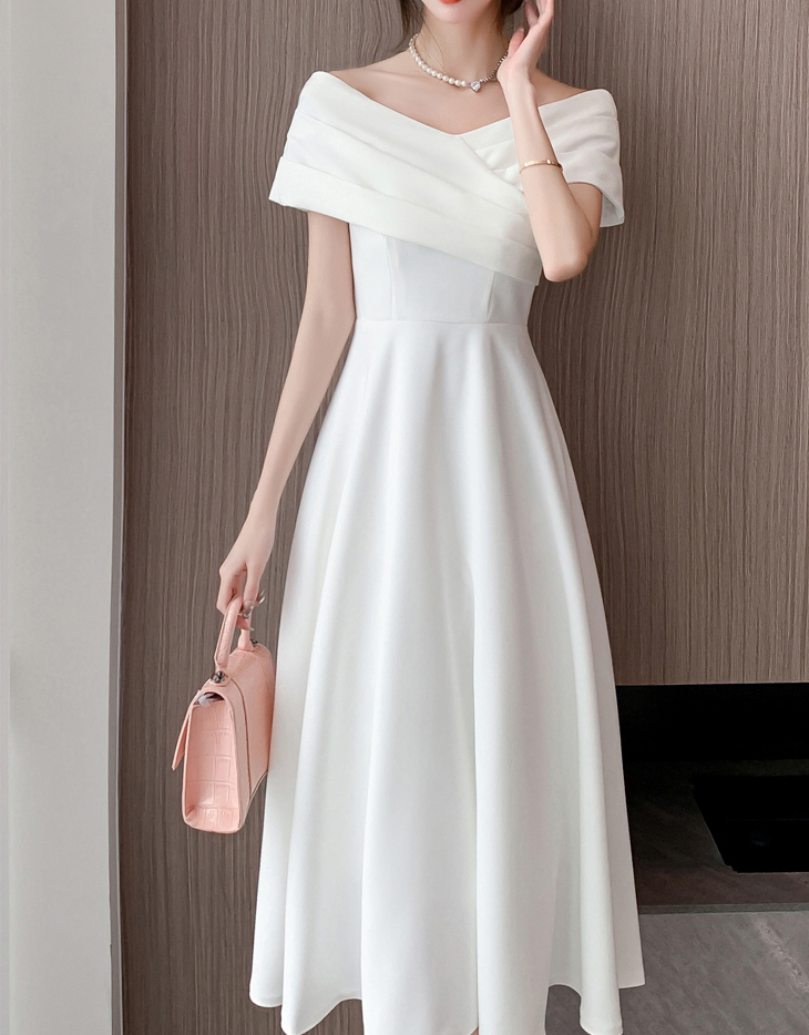 [블랙 할로윈]2부드레스 돌잔치 셀프웨딩 신부 오프숄더 허리잘룩 에이라인 롱 드레스