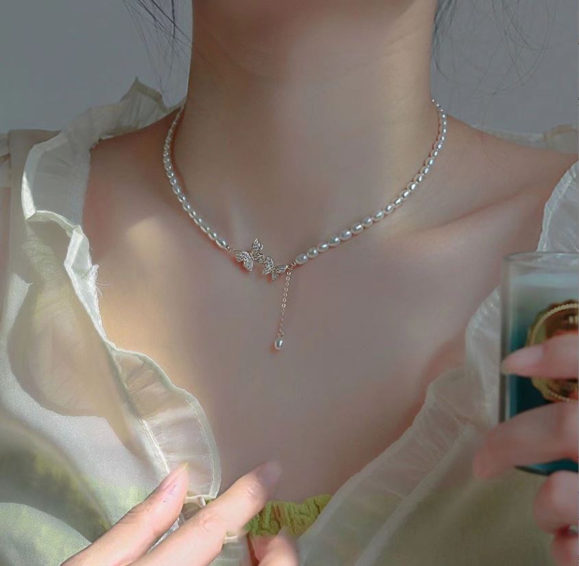[1+1]투투플라이진주목걸이 골드 실버 하트 나비 큐빅 달 진주 학생 우정 생일 선물 목걸이