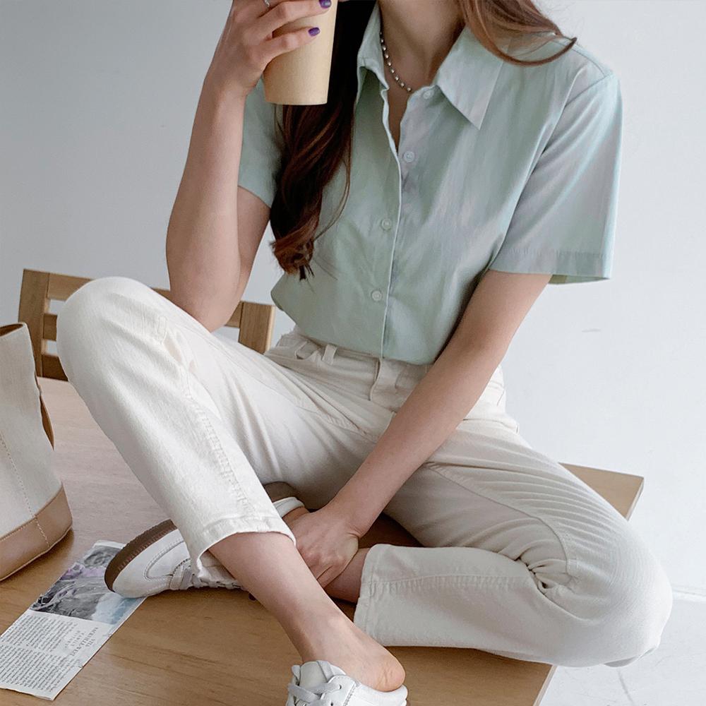 여성 여름 하늘색 남방 반팔 셔츠