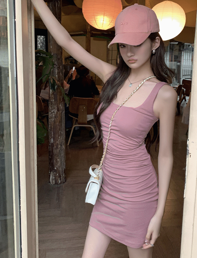 이너핏 섹시 미니 나시원피스 핑크 블랙 스판 여름 니트원피스 민소매 슬림핏 타이트 미니원피스 스퀘어넥 꾸안꾸 여름 코디 데일리룩 데이트룩 20대 30대
