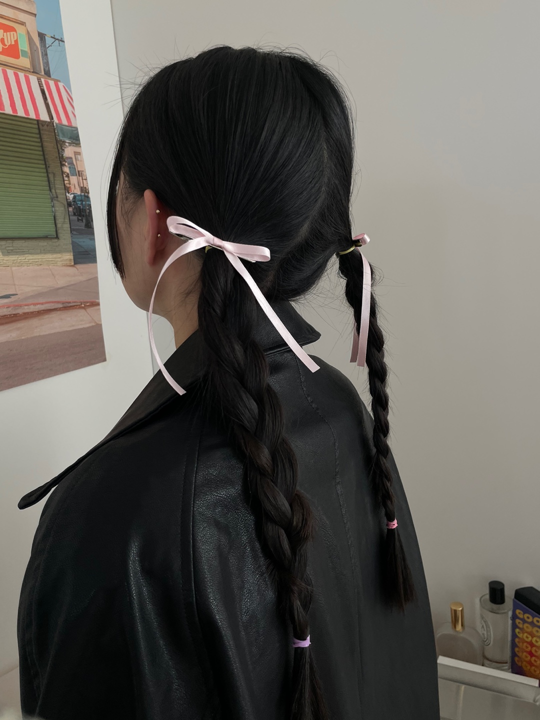 [주문폭주/2개드려요] 1+1 2개세트 롱타이 미니 리본 새틴 헤어 집게핀 옆머리 앞머리삔 3컬러