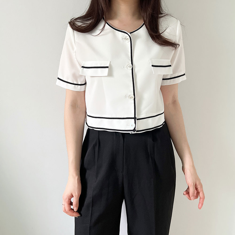 2color 마이린 배색 크롭 반팔 자켓