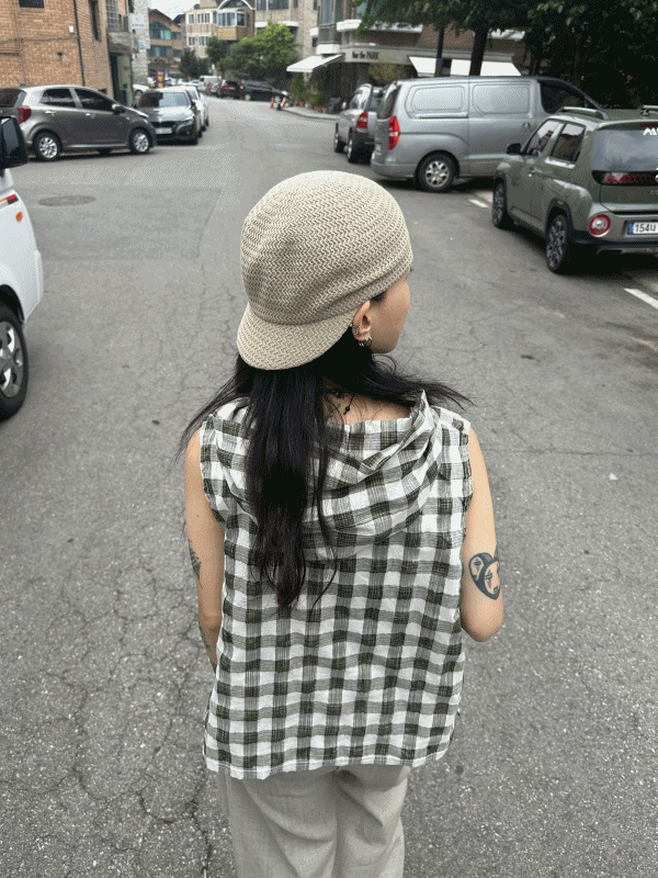 Check strap hoodie vest / 체크 스트랩 후드 베스트 여름 조끼 후드조끼